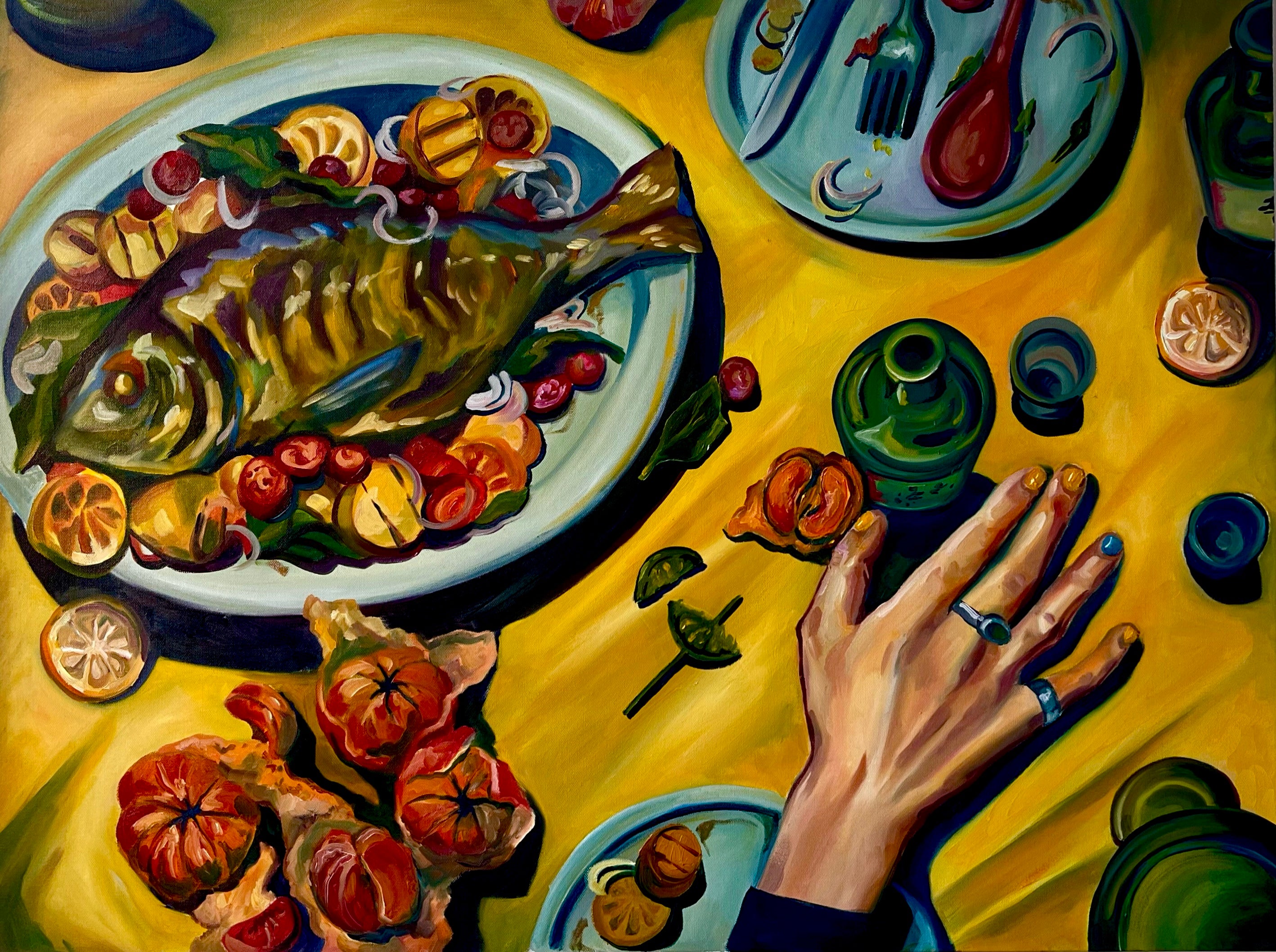 Fish Market in Teal and Yellow